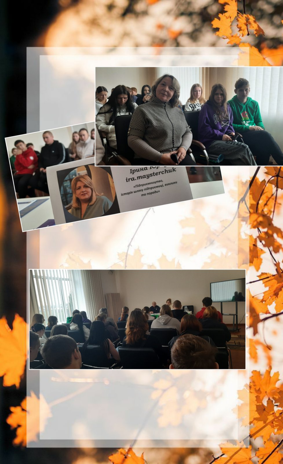 20 листопада у Грицівському вищому професійному училищі №38 відбулася цікава кар’єрна зустріч із жінкою-підприємицею Іриною Майстерчук, власницею компанії «Мамина ферма», що здійснює доставку якісних і корисних продуктів харчування власного виробництва у Хмельницькому.
