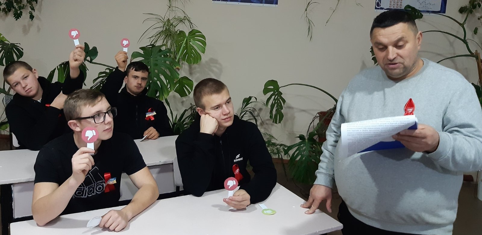 У рамках Всеукраїнської кампанії «16 днів проти насильства» у Грицівському ВПУ №38 відбулася бесіда з вихованцями гуртожитку на тему «Міфи і факти про ВІЛ/СНІД».