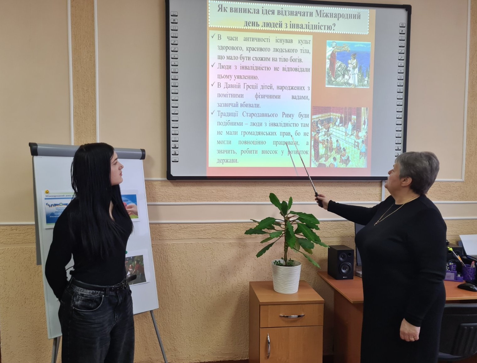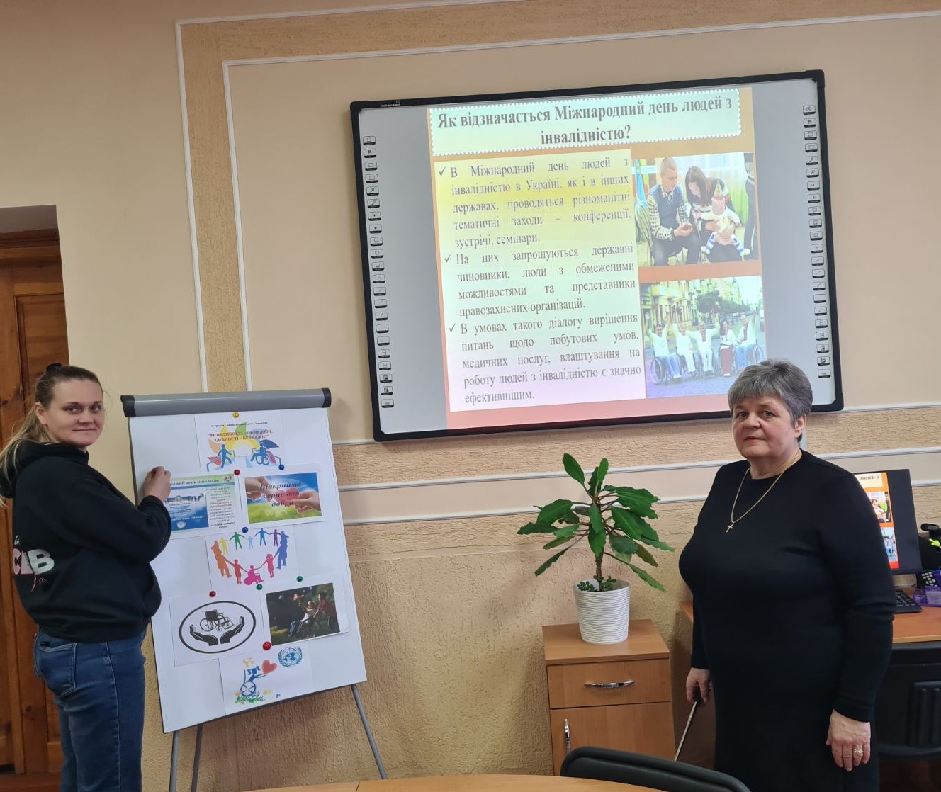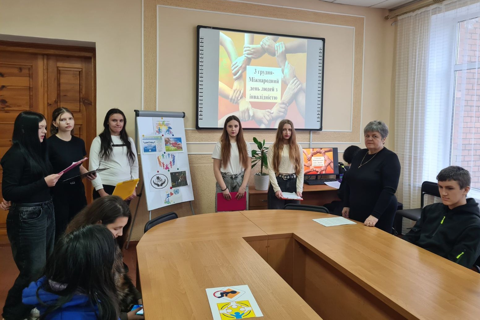 Студенти групи №11 з соціальним педагогом Світланою Зарудзей та майстринею виробничого навчання Валентиною Ящук говорили про цінність кожної людини, про важливість створення безбар’єрного середовища та про те, що турбота починається з маленьких щоденних кроків.
