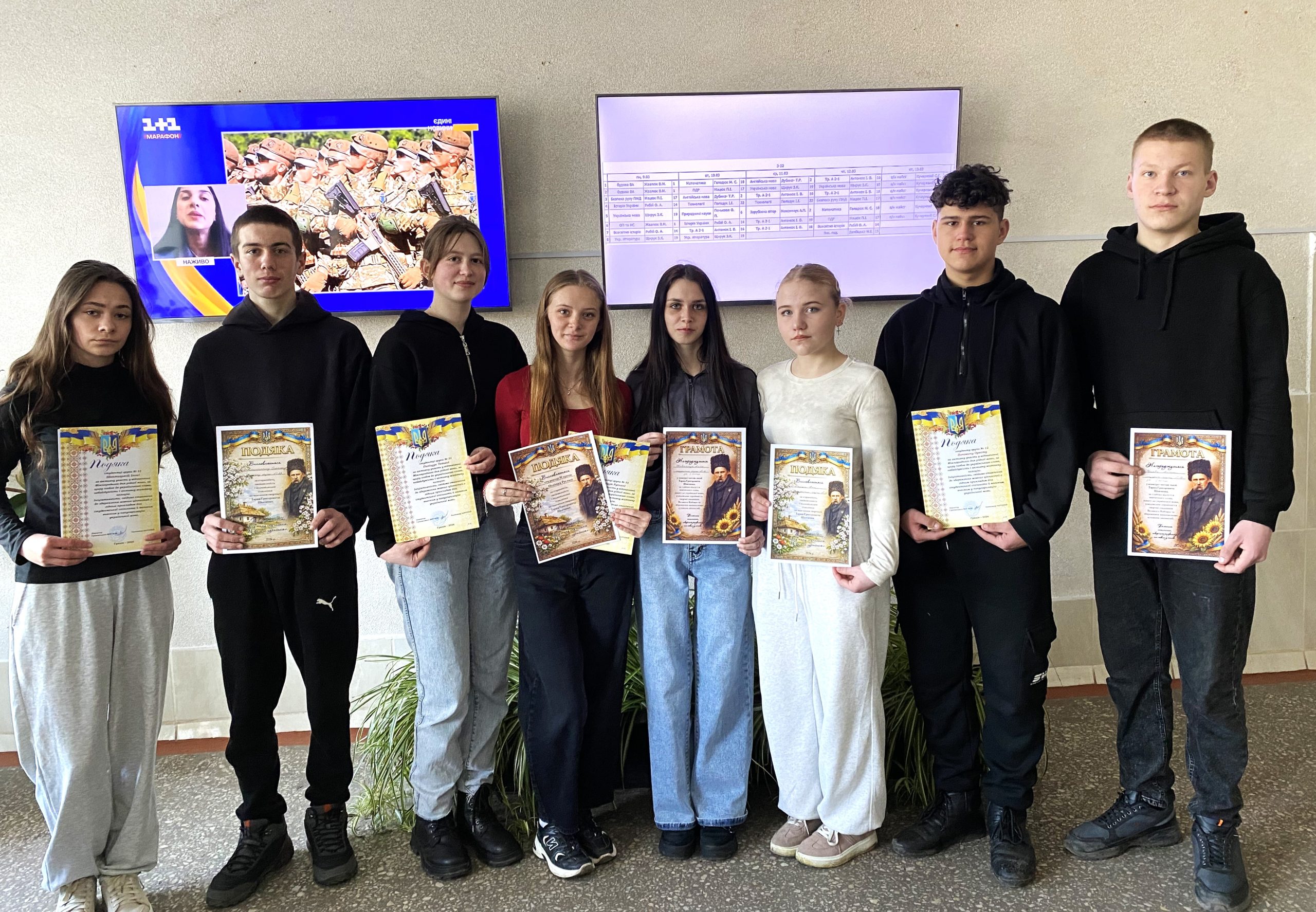 Під час лінійки відзначаємо студентів, які активно проявляють себе в училищних, обласних та Всеукраїнських заходах. Сьогодні особливі слова подяки отримали студенти, які брали активну участь у заходах до Міжнародного дня рідної мови, Шевченківських днях, а також були відзначені переможці конкурсу читців поезій Тараса Шевченка. Їхні досягнення — це гордість нашого закладу і приклад для інших.