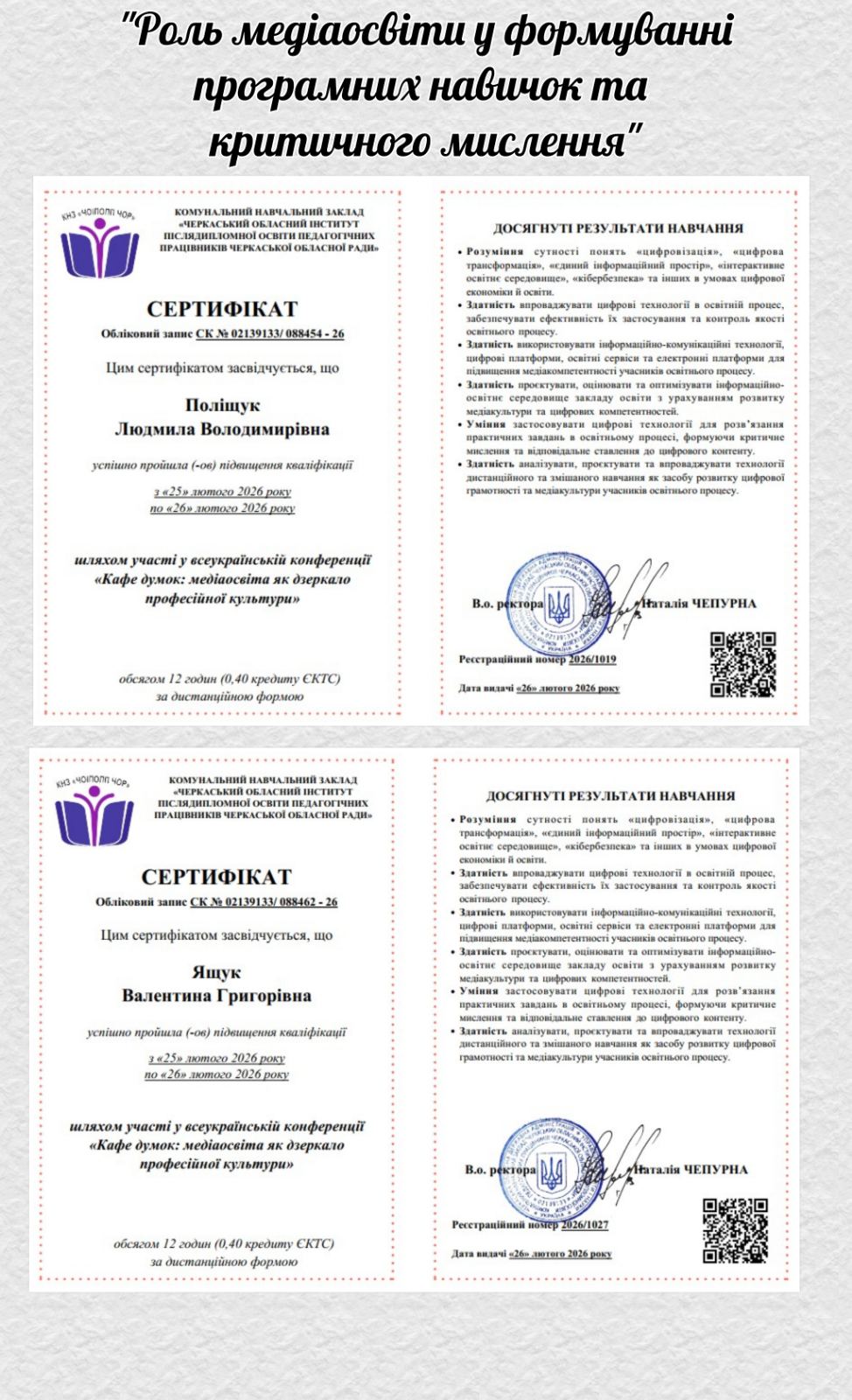 «Роль медіаосвіти у формуванні програмних навичок та критичного мислення» (Валентина Ящук, Людмила Поліщук);