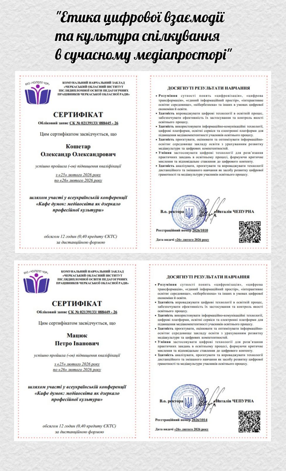 «Етика цифрової взаємодії та культура спілкування в сучасному медіапросторі» (Олександр Кошетар, Петро Мацюк).