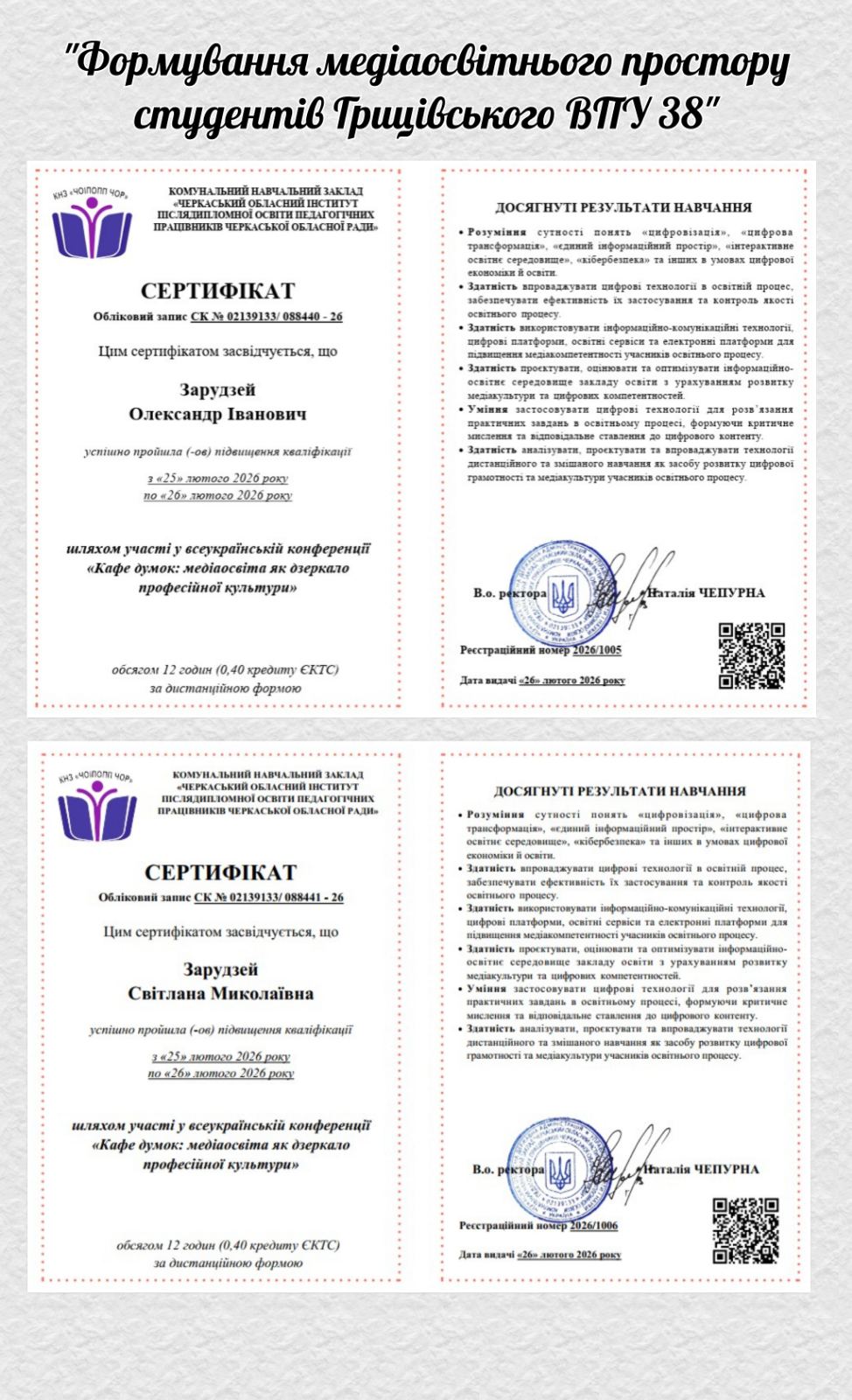 «Формування медіаосвітнього простору студентів Грицівського ВПУ №38» (Олександр Зарудзей, Світлана Зарудзей);