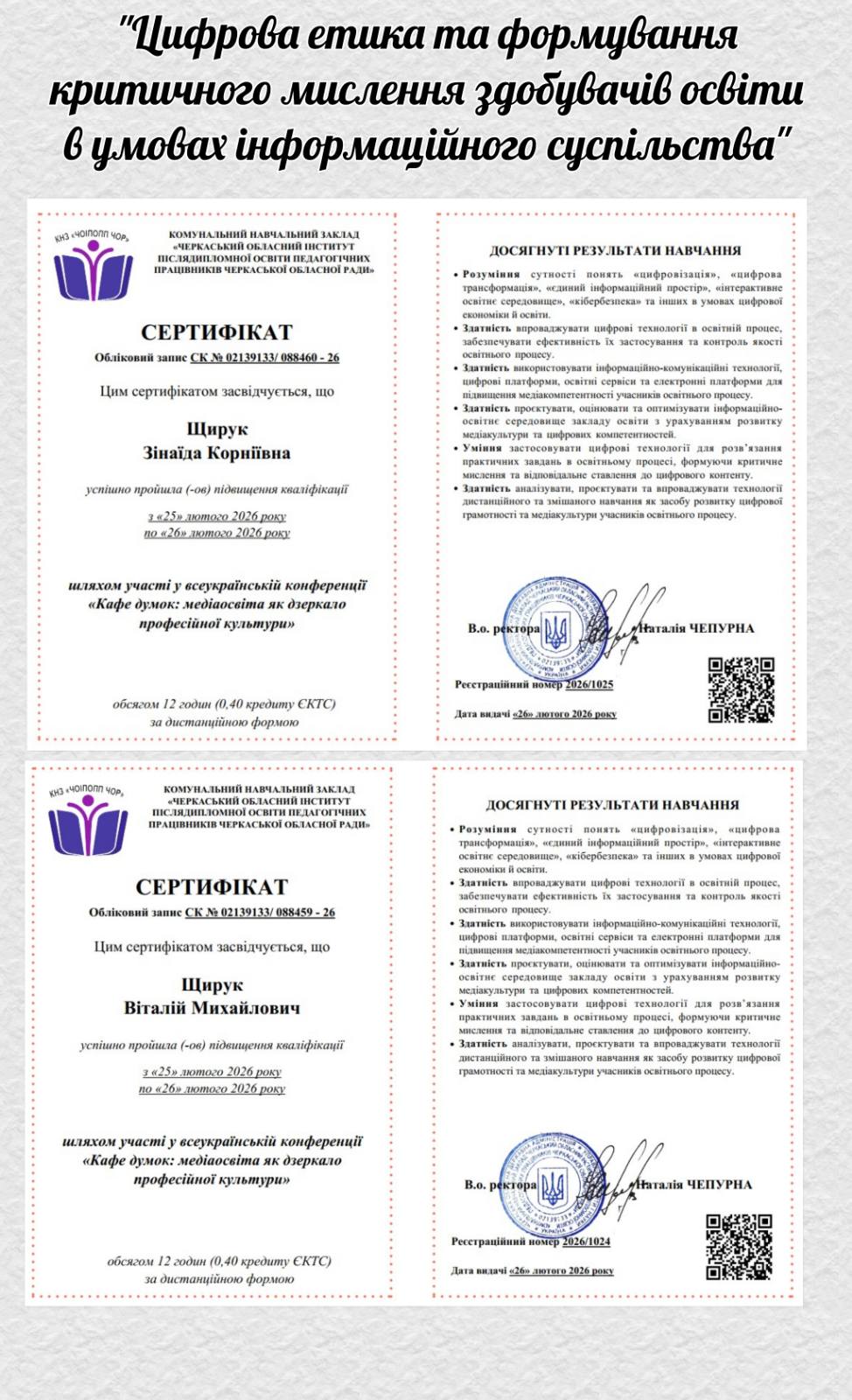 «Цифрова етика та формування критичного мислення здобувачів освіти в умовах інформаційного суспільства» (Зінаїда Щирук, Віталій Щирук);