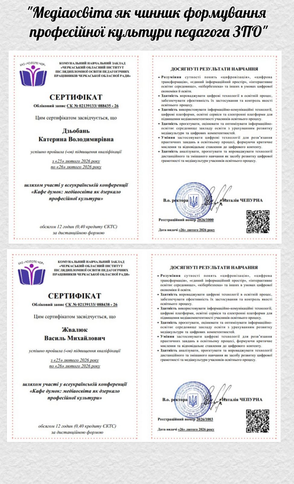 «Медіаосвіта як чинник формування професійної культури педагога ЗПО» (Катерина Дзьобань, Василь Жвалюк);