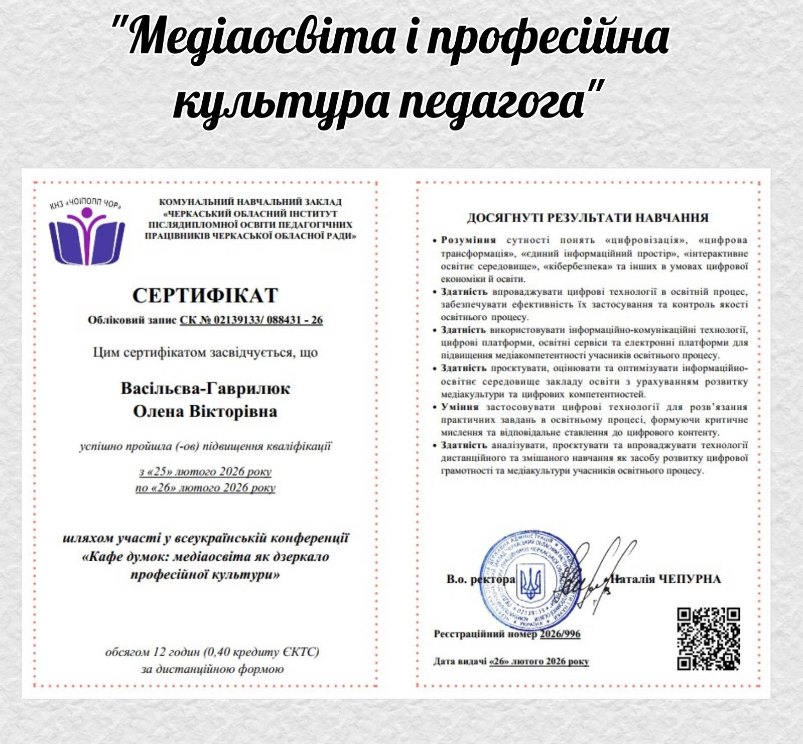 «Медіаосвіта і професійна культура педагога» (Олена Васільєва-Гаврилюк);